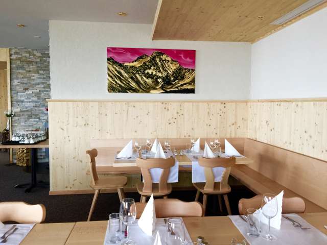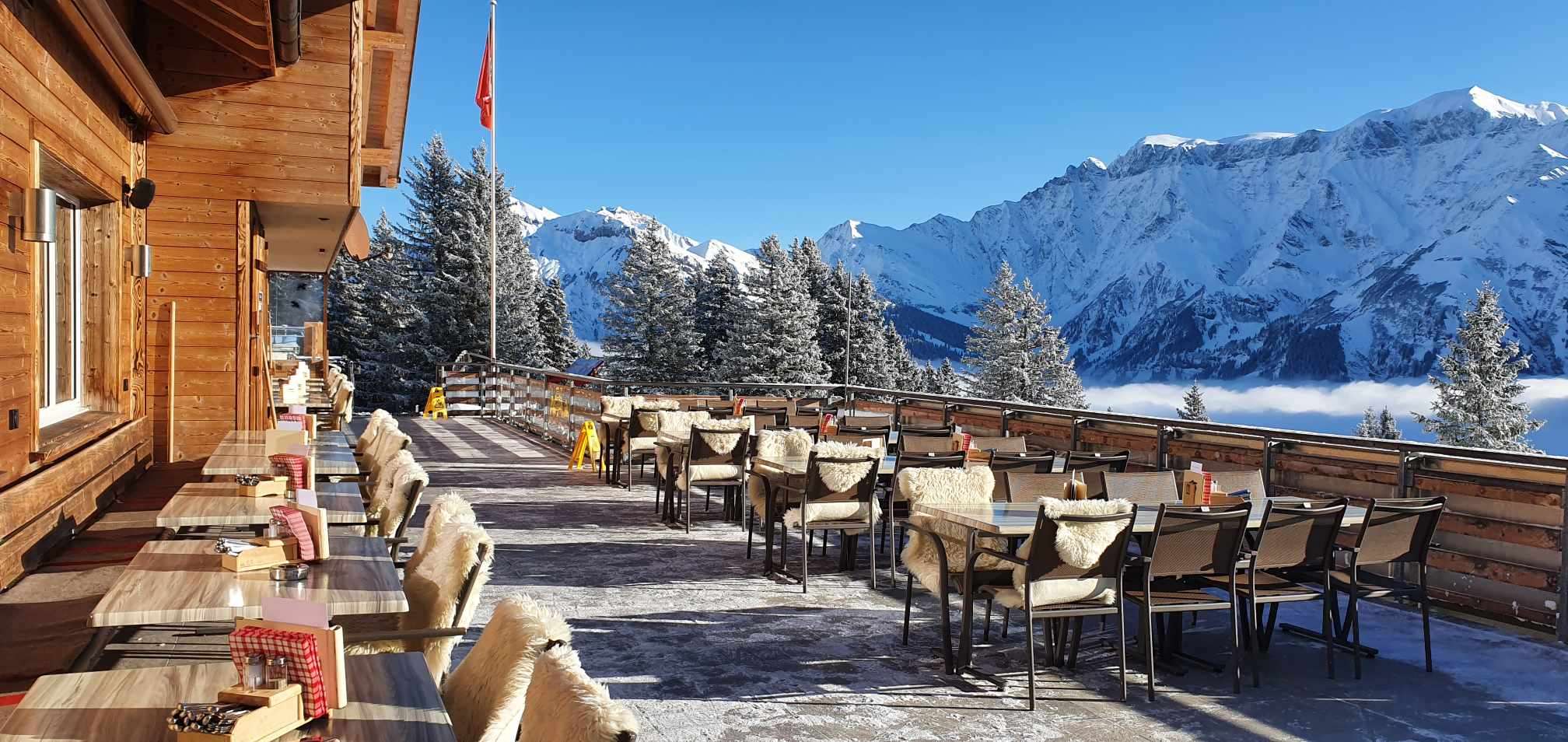 Unser Restaurant mit regionaler Küche verfügt innen über 82 Sitzplätze und bietet auf der Panoramaterrasse insgesamt 116 Sitzgelegenheiten an. Blick auf die Tschingelhörner und das Martinsloch sind im Preis inbegriffen, sofern das Wetter mitspielt...