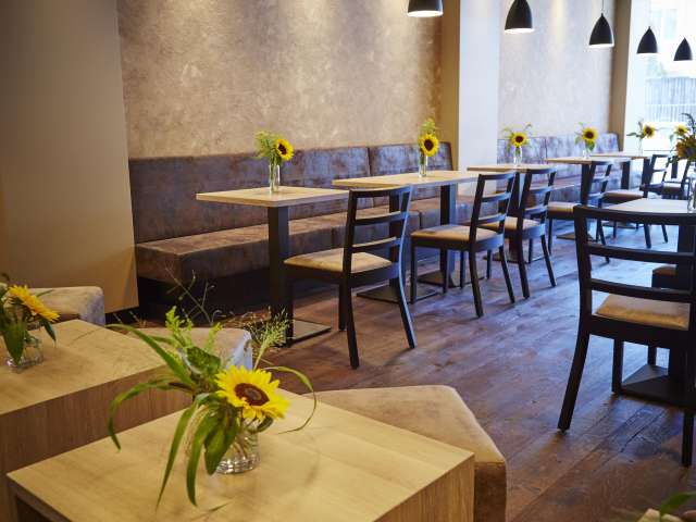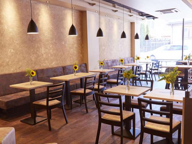 In einem modernen Ambiente erwarten Sie in unserer jüngsten Filiale Backwaren aus Ennenda und feinen Menus und Snacks aus unserer Küche aus Glarus. Ebenfalls ist eine Auswahl an hausgemachten Glace «über d’Gass» oder als Coup erhältlich.