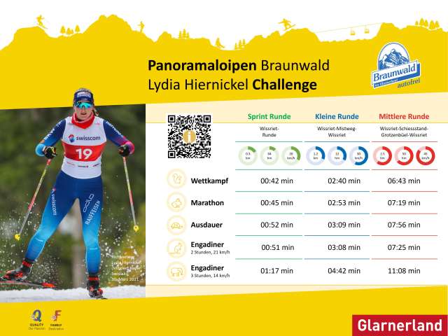 Fordere Lydia heraus! Langläuferinnen und Langläufer haben die Möglichkeit sich mit der Olympiateilnehmerin auf verschieden Runden zu messen.