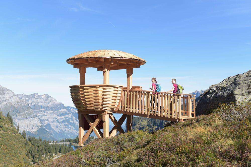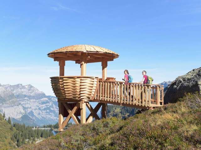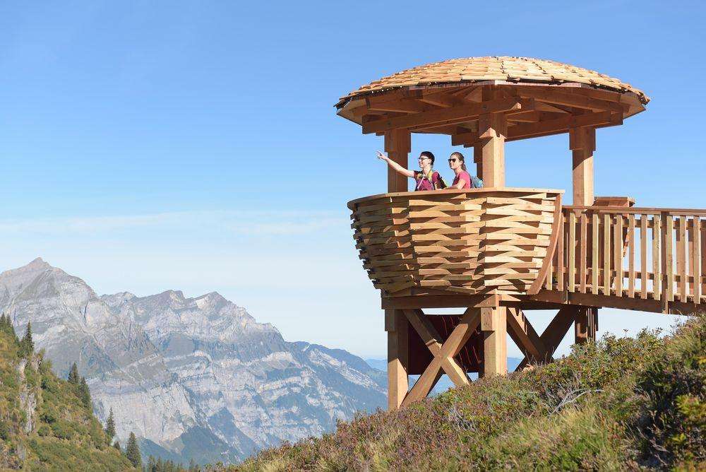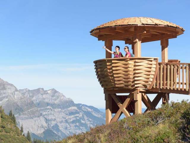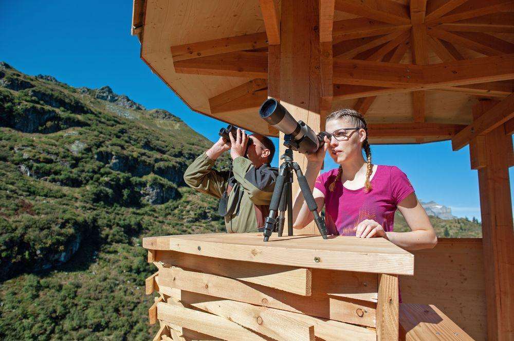Die überdimensionalen Vogelnester auf der Mettmen-Alp (Widerstein und Oberstafel) und bei der Bischofalp sind frei zugänglich und mit spannenden Informationen zur Tierwelt im Freiberg Kärpf ausgestattet. Vom Berghotel Bischofalp sind es nur rund 20 Minuten bis zur Wildbeobachtungsstation. Die Stationen sind ab der jeweiligen Bergstation in 45 bis 60 Minuten Wanderzeit erreichbar.