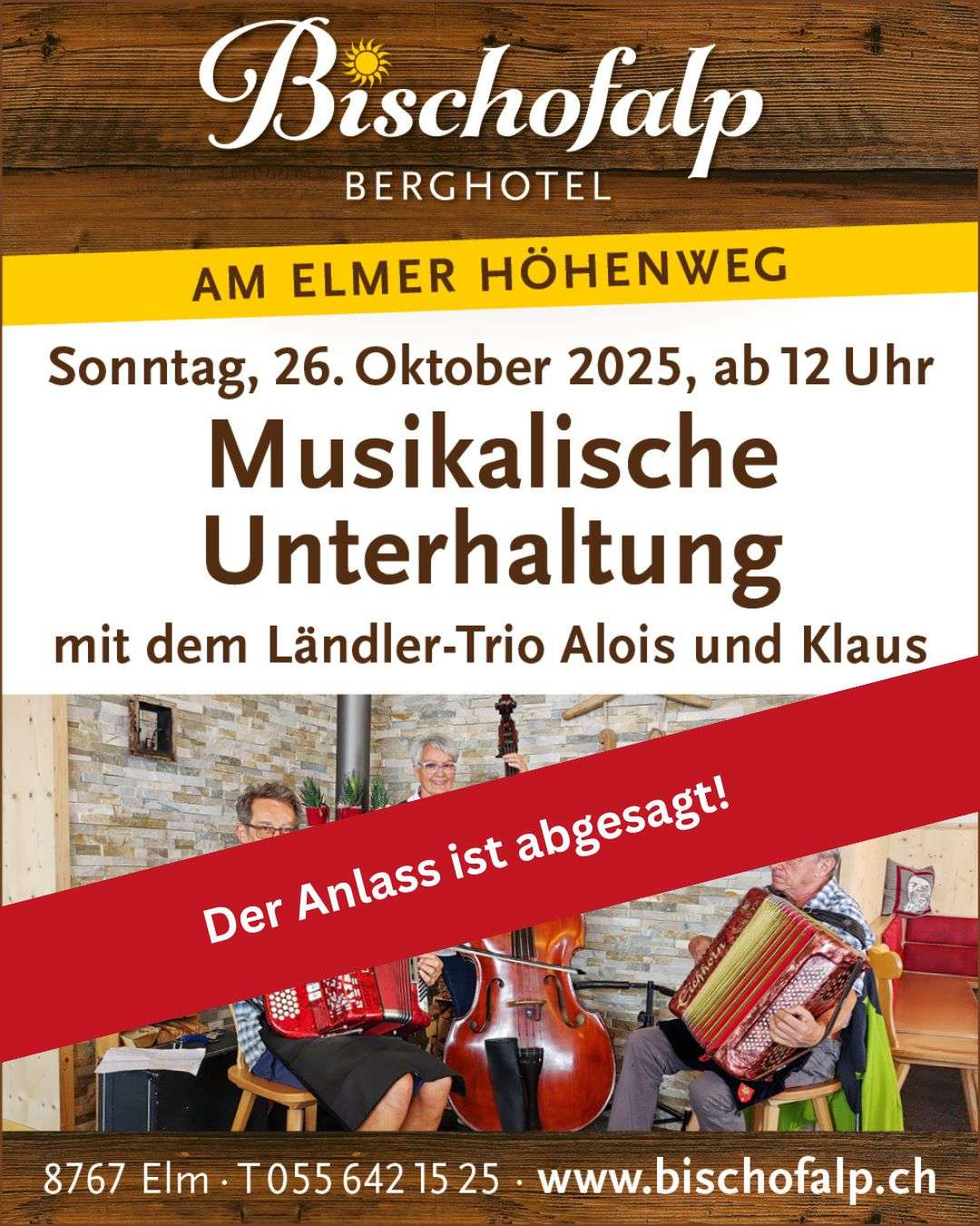 Abgesagt wegen schlecht Wetter |